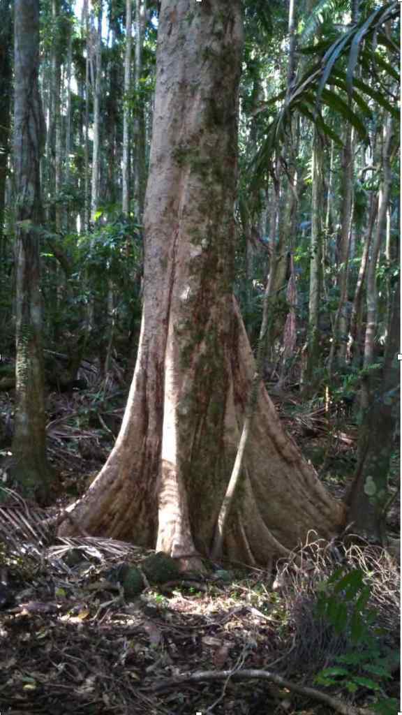 When in the rainforest, you can’t confuse this species with any other tree. The bark is a distinctive fawn colour and the trunk is decorated with numerous craterous depressions left by bark shedding. Sometimes in older trees, the trunk develops very large swollen protuberances up to a metre across.