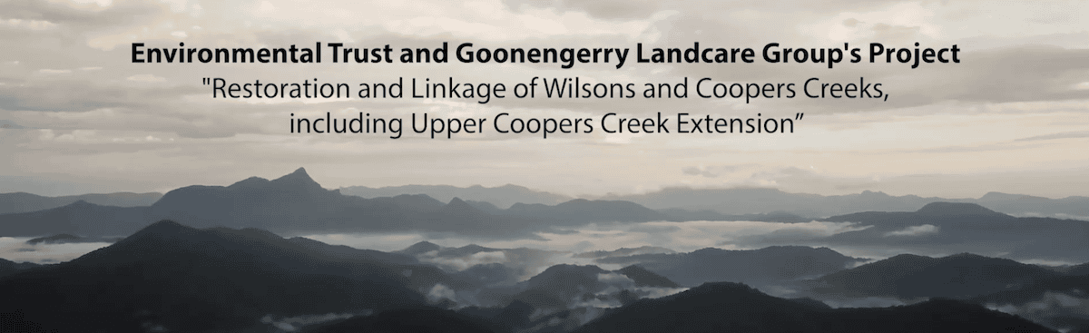 This is a must-watch – an inspiring update on the Environmental Trust and Goonengerry Landcare Group’s Project for Restoration and Linkage of Wilsons and Coopers Creeks including Upper Coopers Creek Extension.