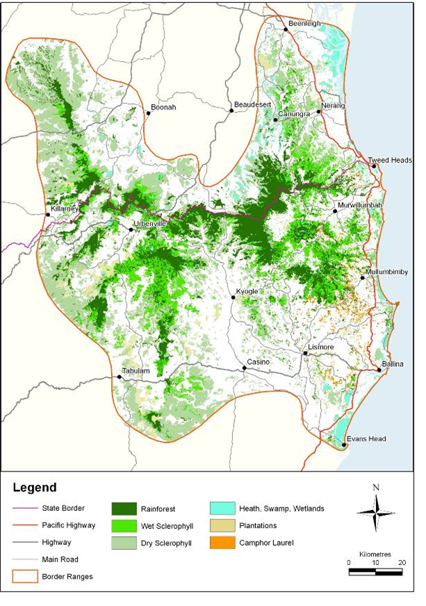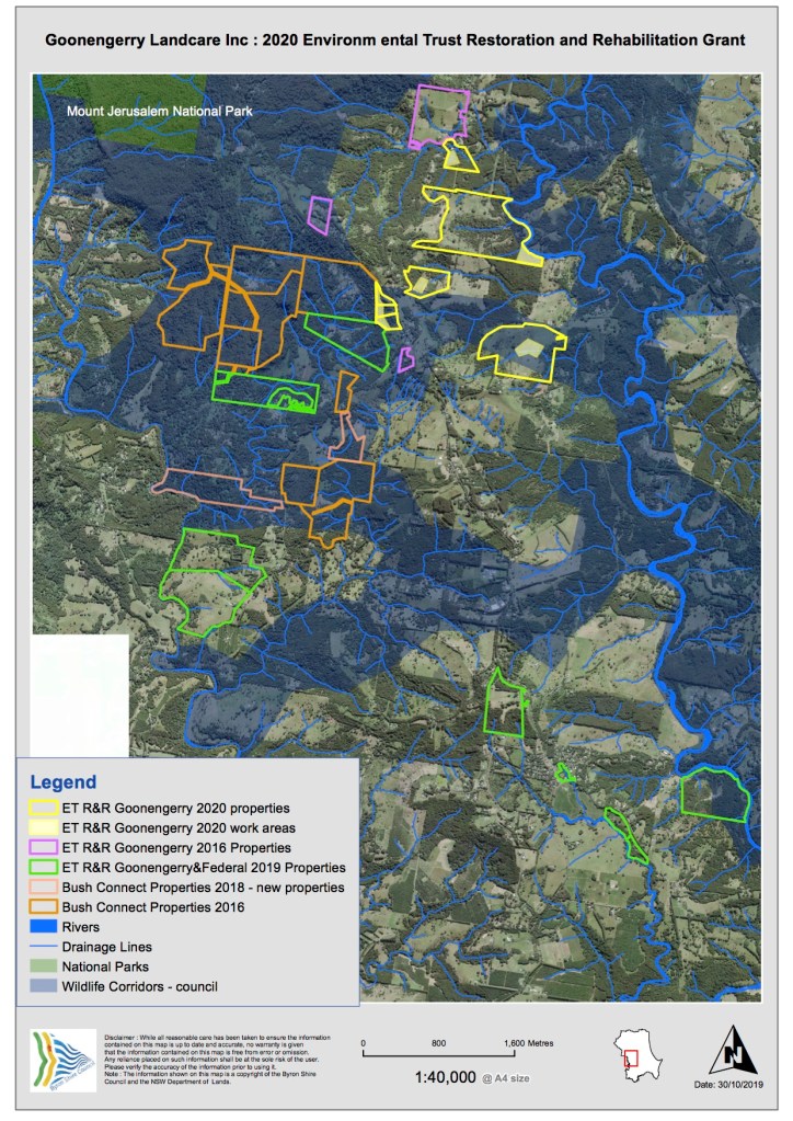 Goonengerry is a small village in New South Wales, Australia, 626 km northeast of Sydney, in the hinterland of Byron Bay.Goonengerry National Park lies within the Nightcap Range Important Bird Area, identified by BirdLife International because it contains the largest known population of Albert’s lyrebirds, as well as several other significant bird species.Goonengerry National Park is part of the Northern Rivers Region and Border Ranges Planning Area.Goonengerry National Park includes areas of rainforest and wet sclerophyll.Goonengerry has a high annual rainfall.This area is part of the Great Eastern Ranges Conservation Corridor.Properties participating in the Great Eastern Ranges InitiativeCouncil maps indicate location and boundaries.Goonengerry Landcare worked sitesTerrestrial Ecoregions in AustraliaMajor Vegetation Groups in AustraliaWorld rainforest location